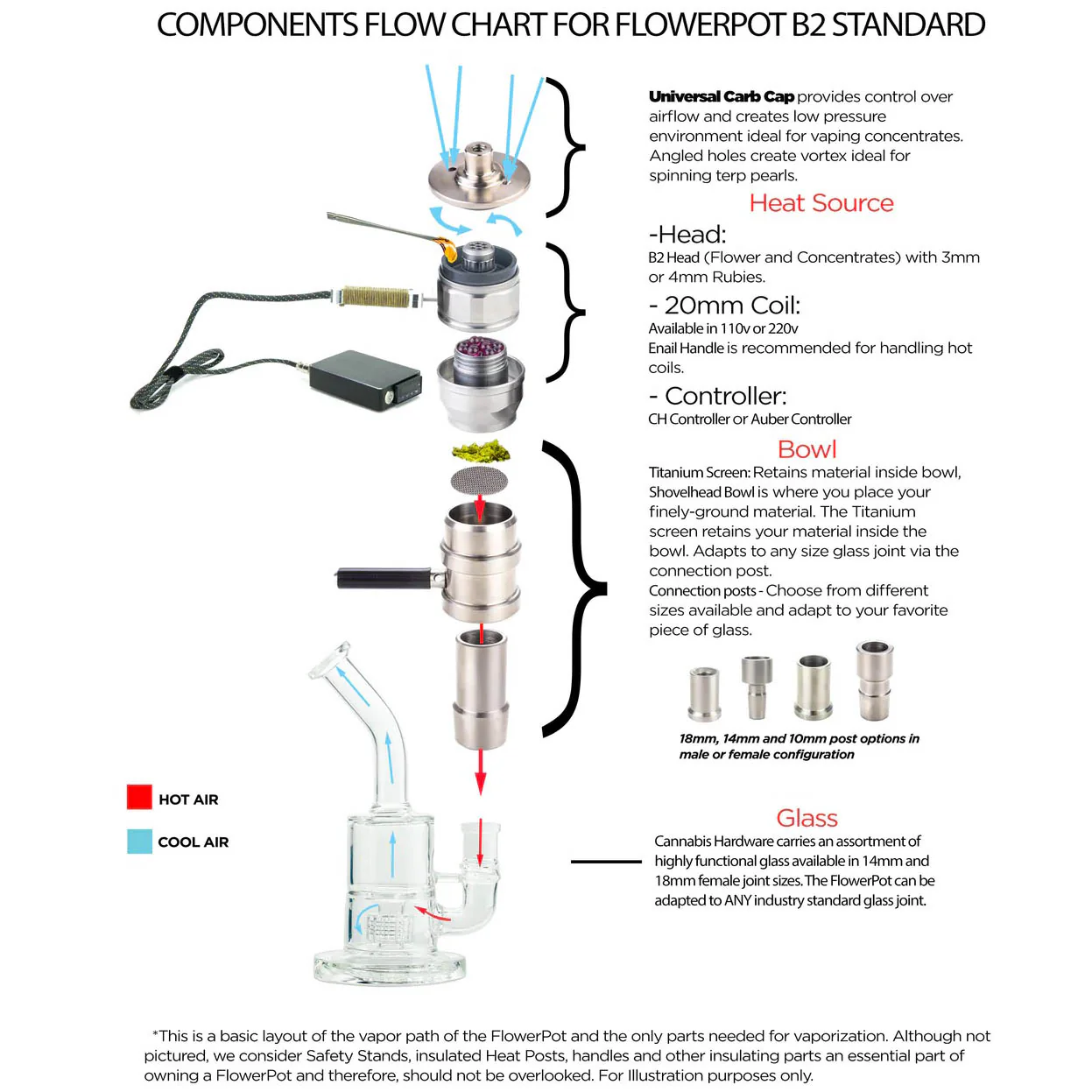 Everything you need and nothing you don’t. If you have a Glass Rig, this bundle will get you vaping dry herbs and concentrates right away. Includes both 14mm and 18mm connection posts. The FlowerPot B2 is the premiere desktop dual purpose vaporiser.