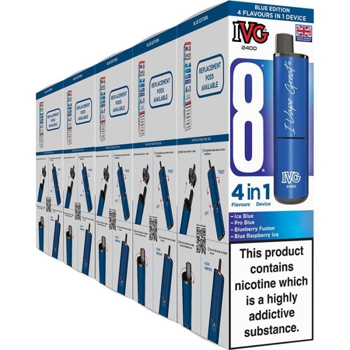 Pack of five IVG 2400 4 in 1 pod vape kits:.