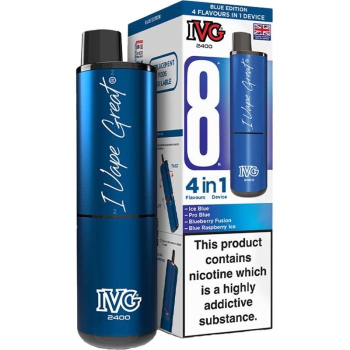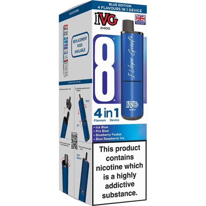 Each 2ml pod is prefilled with 20 mg/ml nicotine strength e-liquid and features 4x mesh coils for an enhanced flavour experience. Additional IVG 2400 Reload 4 in 1 pods are available to purchase separately.