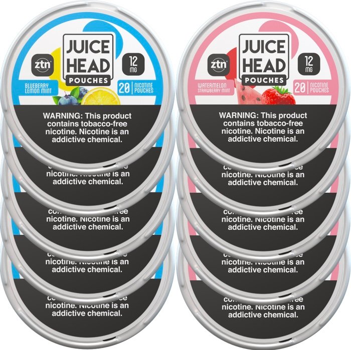 Juice Head 12mg 12mg Bestsellers – Ten Count: two of the most popular fruit-forward, mint-back pouches made with Zero Tobacco Nicotine® (ZTN) – a form of synthetic nicotine. Juice Head pouches offer an alternative to traditional oral tobacco products for adult nicotine users 21+.